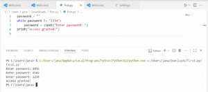 ويمكن أيضًا استخدام الحلقة لتكرار إدخال المستخدم حتى يكتب كلمة المرور الصحيحة: